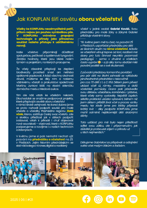 Na budovu Konplanu byly umístěny včelí úly, díky nimž firma produkuje menší množství vlastního medu. Osvětu v oboru včelařství Konplan šíří dlouhodobě, například díky akcím pro školy, a zisk z vlastního medu využívá také k charitativním účelům.